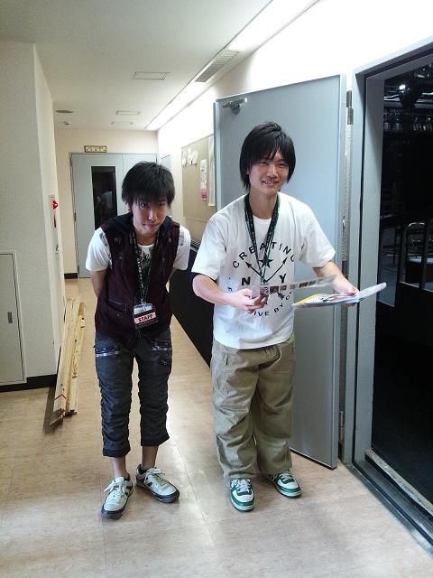 説明会場の入り口で資料を配っていた、一年生の吉田くん(左)と仲田くん(右)!