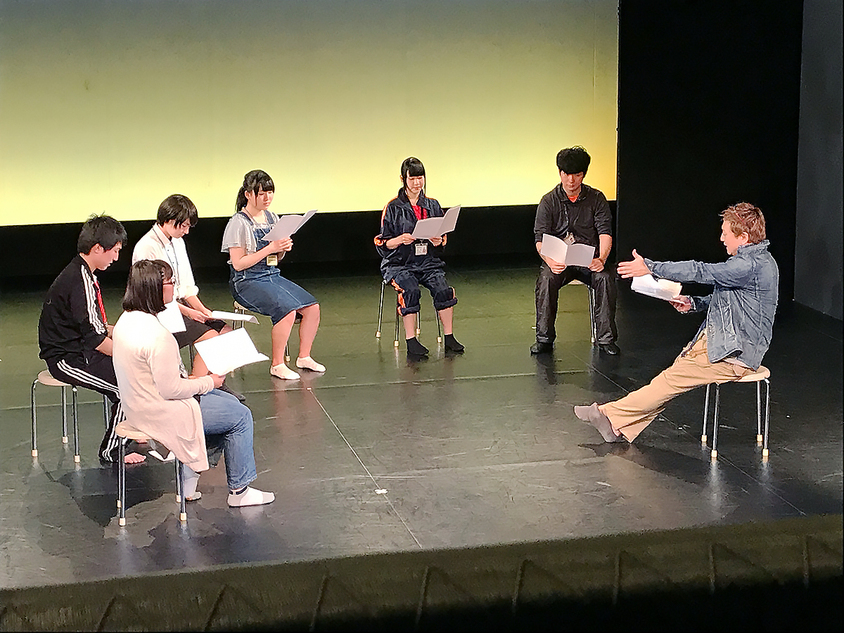まずは台本を配って、様々なキャラクターを演じる練習から。